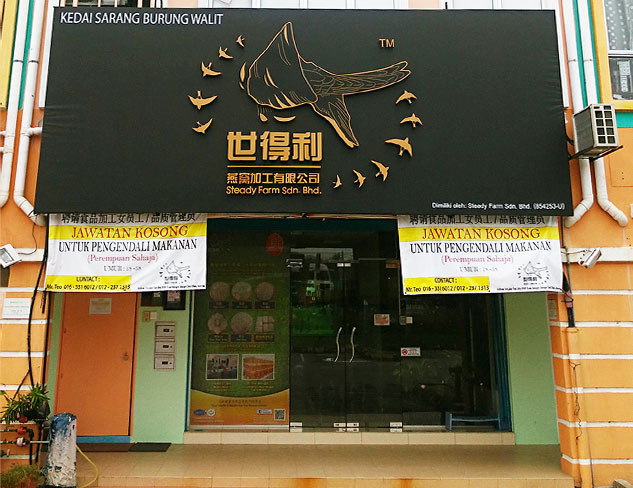 Steady Farm Sdn. Bhd was established in 2009. Our company is a Malaysia bird’s nest corporation that integrates the complete chain of bird’s nest ranching, processing, research & development and sales distribution. Our company and Edible Bird’s Nest (EBN) processing plant are located at Kuala Selangor, Selangor.